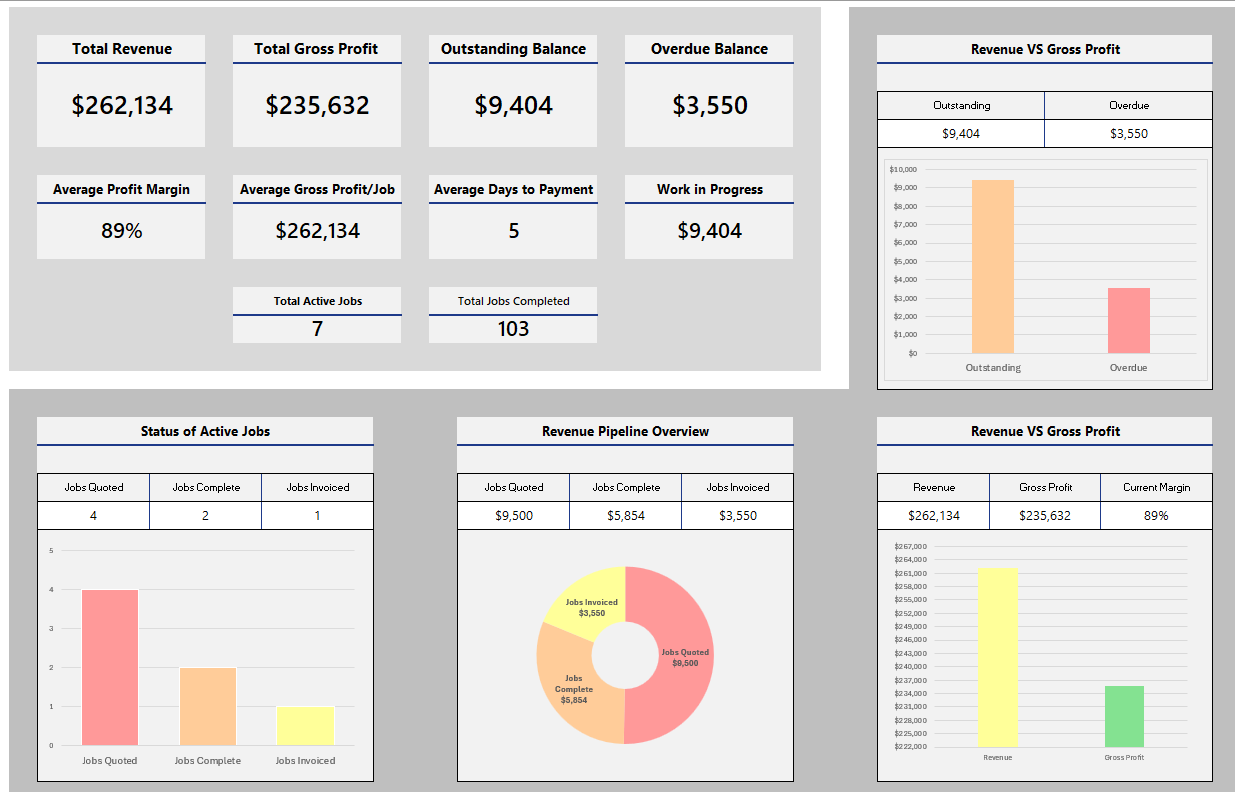 Gain real-time visibility over every job. Track labour hours, materials, progress, and profitability in one clear, structured system without relying on scattered spreadsheets.